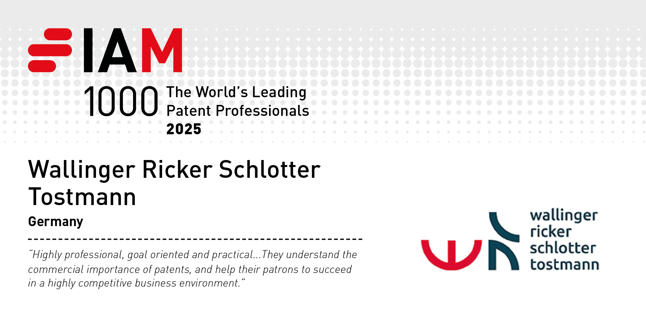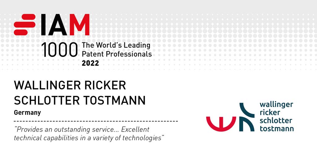 „For years, Wallinger Ricker Schlotter Tostmann has been ranked among the top IP law firms in Germany, including by the JUVE law firm ranking, which each year has placed it among the top 5% of all IP firms (over 400) in Germany, particularly in regard to contentious matters.“